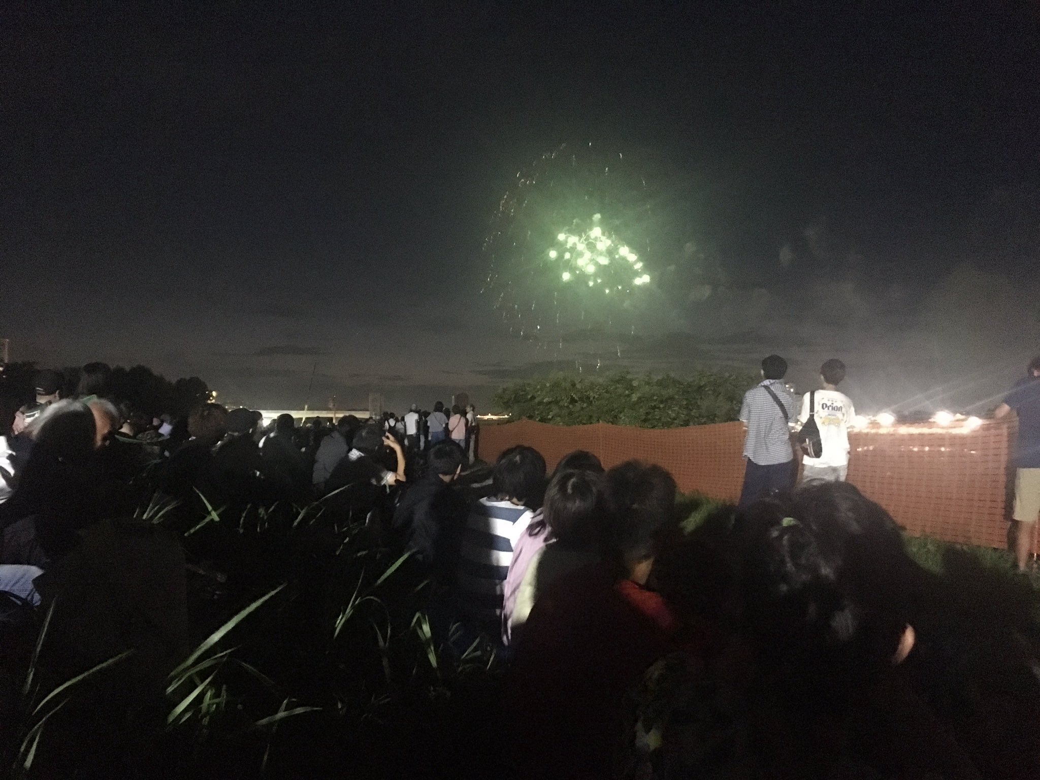 開催場所の多摩川でも、駅から少し離れた距離の土手まで行くと割と人が少なくゆっくり観れます。