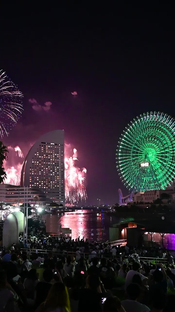 横浜の町並みを背景に夜空に打ち上がる花火は美しいこと間違いなしです。