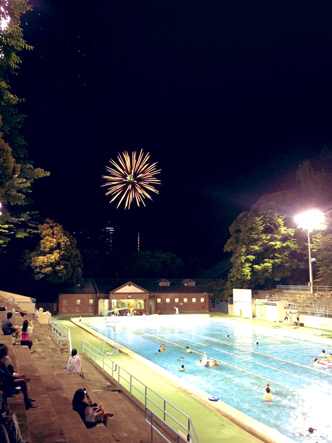 花火打上げ会場から少し離れていますが、夜空に打ち上がる花火をきれいにみられます。